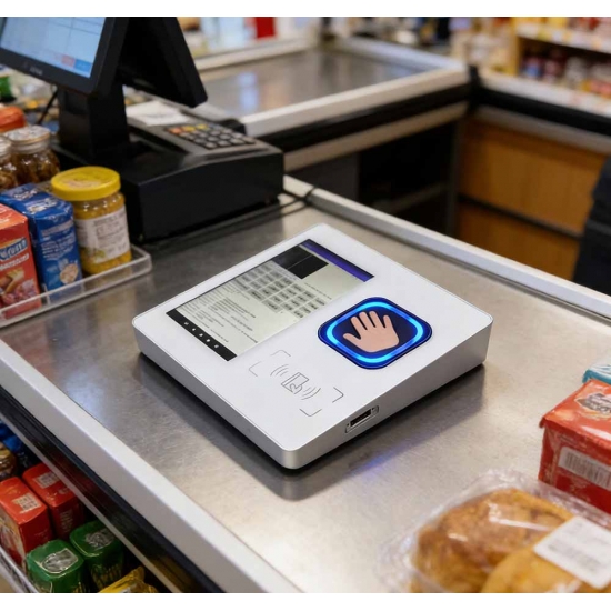 Leitor de pagamento com reconhecimento de veias da palma da mão binocular modelo SF255 com visor totalmente funcional.